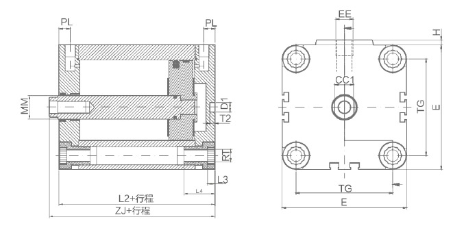 - CQ2系列薄型氣缸