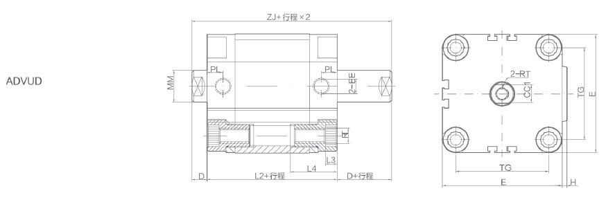 - ADVU系列薄型氣缸