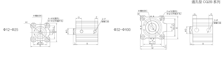通孔(標(biāo)準)/兩準內(nèi)螺紋(任選) |