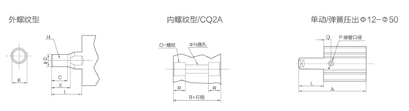 單動/單動: 彈簧壓回/彈簧壓出 |