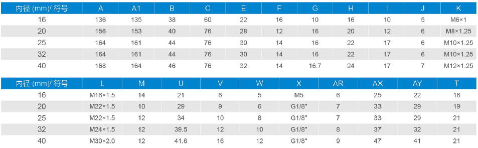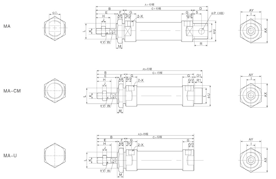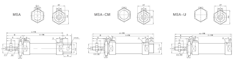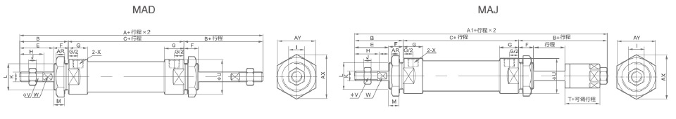- MU系列橢圓形活塞氣缸(桿不回轉)