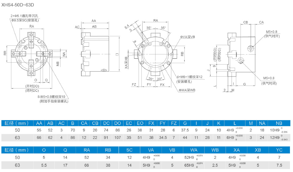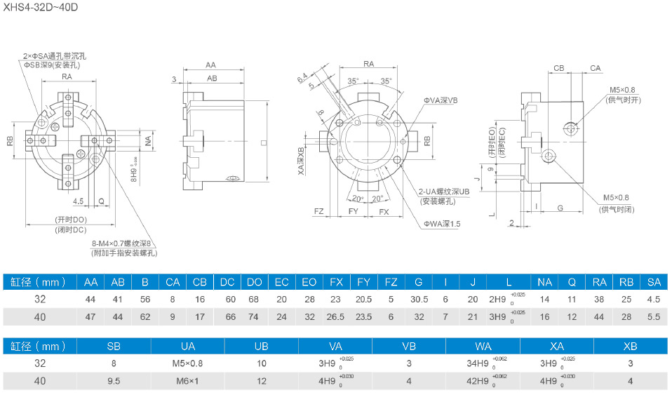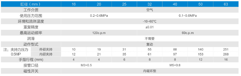 XHS4平行開閉型氣動(dòng)手指(圓柱形)
